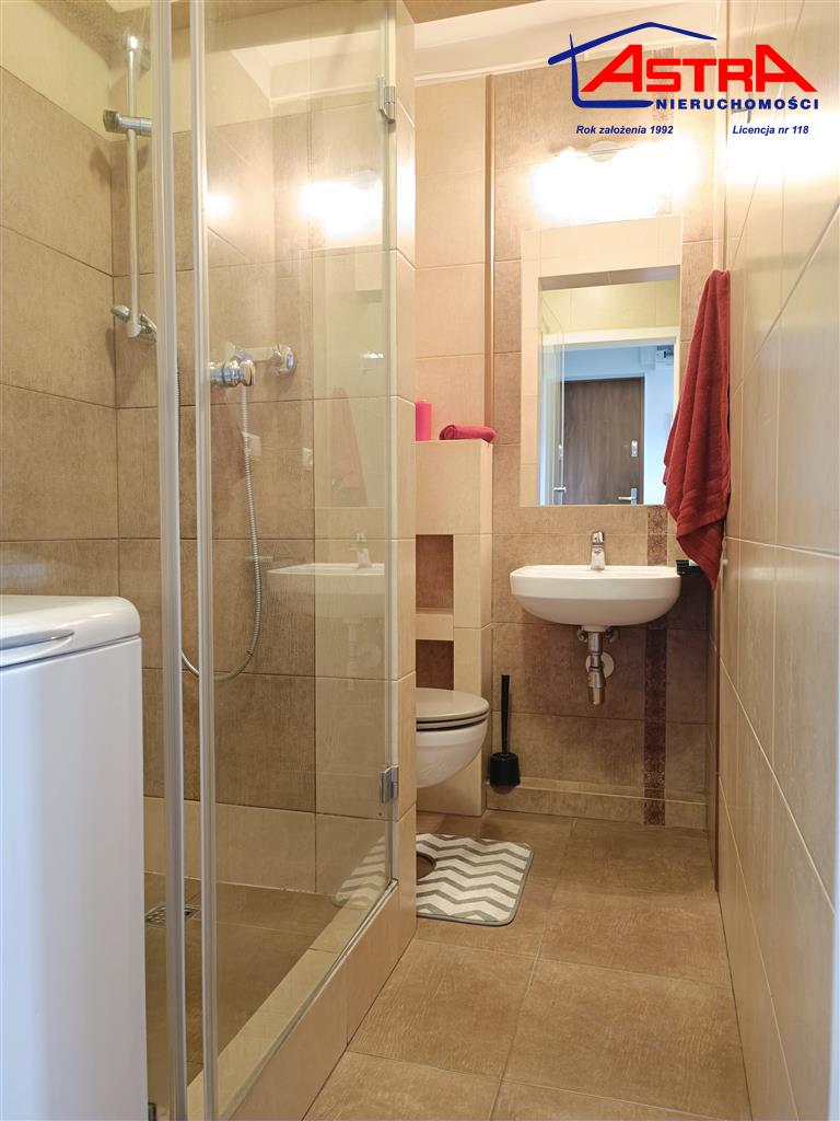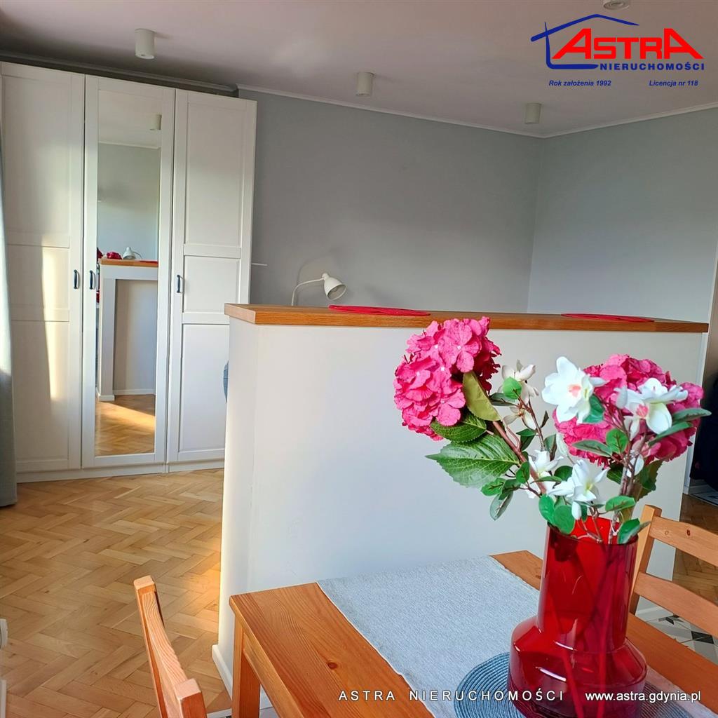 Mieszkanie typu studio: pokój ( wygodne łóżko dwuosobowe, szafa ubraniowa, fotel) , obszerny aneks kuchenny w pełni wyposażony w sprzęt AGD oraz podstawowe naczynia, praktyczna mała jadalnia z wygodnym dużym stołem. Łazienka z kabiną prysznicową i pralką. Wystawa okien zachodnia. Idealnie zorganizowana przestrzeń dla jednej, max dwóch osób. meble i wyposażenie - w cenie.