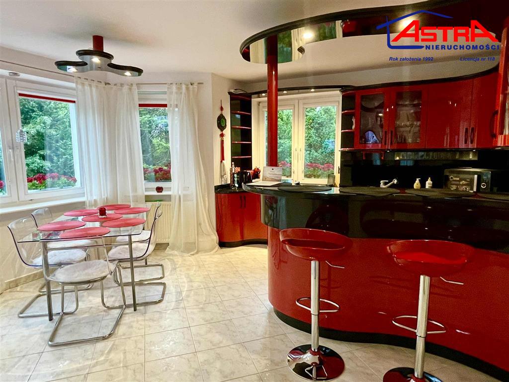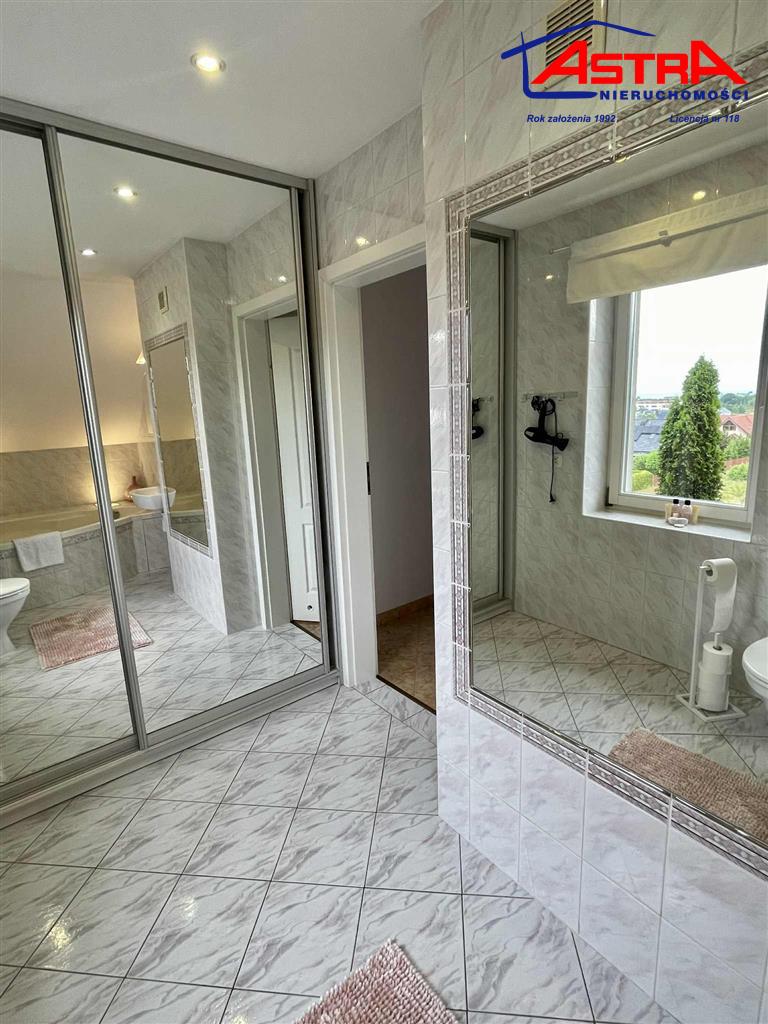PARTER: Przestronny salon z kominkiem i z wyjściem na duży słoneczny taras, kuchnia z jadalnią również z wyjściem na taras. Sypialnia z balkonem. Duża jasna łazienka z oknem oraz z prysznicem i pojemną zabudową typu Komandor. Garderoba.