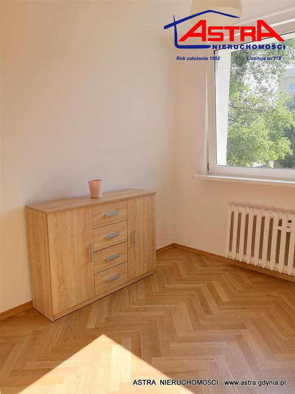 Centrum Gdyni. Budynek w sąsiedztwie Centrum Handlowego Batory , w pobliżu dworca PKP, Skweru Kościuszki , nadmorskiego bulwaru i plaży. Mieszkanie po remoncie, 2 niezależne pokoje po ok. 17 i 9 m2 , balkon , osobna jasna KUCHNIA ( umeblowana i wyposażona w sprzęt AGD, bez zmywarki ), łazienka z kabiną prysznicową i pralką. 2 szafy, okna wymienione , nowa stolarka drzwiowa , parkiet , mieszkanie odświeżone. Wyposażenie : POKÓJ DZIENNY - kanapa narożna , stół+ krzesła, komoda, SYPIALNIA - zabudowana szafa, komoda, brak łóżka.