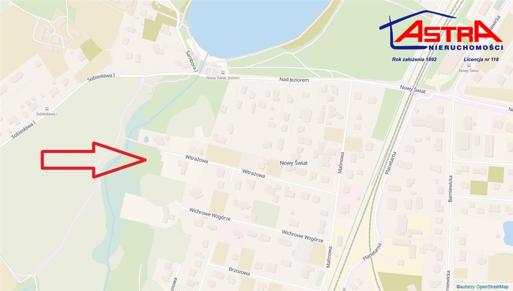 Lokalizacja : Barniewice / Nowy Świat , gmina Żukowo. 2 działki budowlane o powierzchni 1.449 m2 i 1.000 m2 położone obok siebie w uroczej enklawie zieleni, w sąsiedztwie lasu i Jeziora Wysockiego      (około 500 m) stanowiącego granicę administracyjną między miastem Gdańsk a gminą Żukowo. Najbliższe otoczenie to nowo powstałe, niskie budynki jednorodzinne.