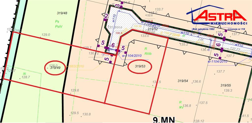 Działki  w kształcie prostokąta o wymiarach : działka 1.449 m2 : ok. 55m x 26m , działka 1.000 m2 : ok. 42m x 24m. Sprzedaż dotyczy 2 działek ŁĄCZNIE.